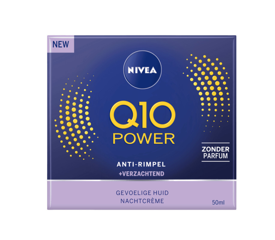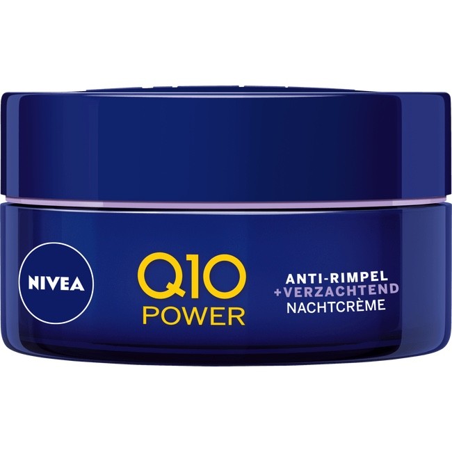 NIVEA Q10POWER Anti-Rimpel Verzachtende Nachtcrème is speciaal geschikt voor de gevoelige huid. De formule combineert het cel-actieve Q10 met Creatine waardoor effectief fijne lijntjes en rimpels worden verminderd en de huid steviger aanvoelt. Door de toevoeging van Zoethout Extract worden 3 tekenen van een gevoelige huid verminderd: roodheid, droogheid en een trekkigerig gevoel. De intensief voedende formule herstelt de huid gedurende de nacht wanneer deze daar het meest ontvankelijk voor is.