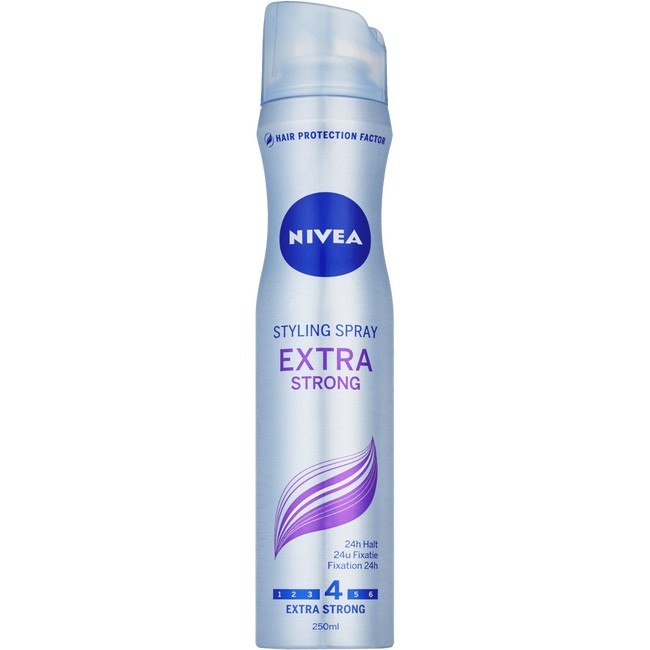 NIVEA Styling Spray Extra Strong met Hair Protection Factor geeft tot 24 uur extra sterke fixatie. De styling spray droogt je haar niet uit dankzij de verzorgende macadamia olie. Versterk en bescherm, voor mooi en zichtbaar gezond haar dat de hele dag goed zit.