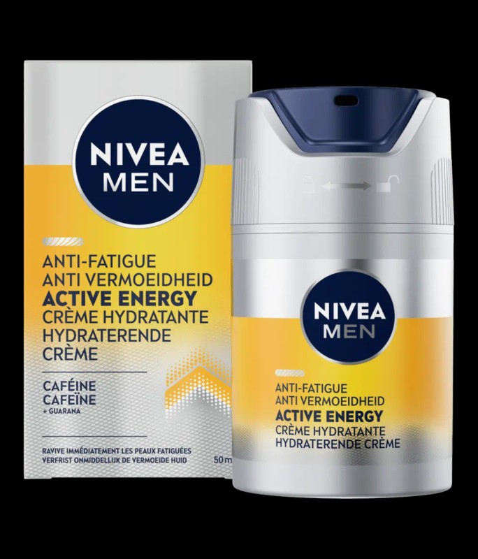 NIVEA MEN Active Energy Gezichtscrème; net als je lichaam heeft je huid dagelijks energie en vitaminen nodig. Daarom heeft NIVEA MEN een innovatieve gezichtscrème ontwikkeld die je huid voorziet van versterkende vitamines en mineralen die je huid de energie geven die het nodig heeft voor een energieke en gezond uitziende huid. De formule met Vitamin+ Complex plakt niet, verfrist en voedt de huid intensief.