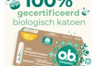 De o.b. Organic Normal-tampons voor gemiddelde tot zwaardere menstruatiedagen zijn van de tampon zelf tot het terugtrekkoordje vrij van plastic, voor een betrouwbare en natuurlijke bescherming. De o.b. Organic Normal-tampons bestaan uit 100% gecertificeerd biokatoen en bieden met hun unieke gebogen groeven een schoon en beschermd gevoel. Daarnaast zijn de organische tampons vrij van schadelijke chemicaliën (bv. pesticiden), chloorbleekmiddel en parfum. Bovendien bestaat de verpakking voor 90% uit gerecycleerde materialen en is het karton 100% recycleerbaar. Ze zijn ook gecertificeerd door ECOCERT en geproduceerd volgens de GOTS-standaard.