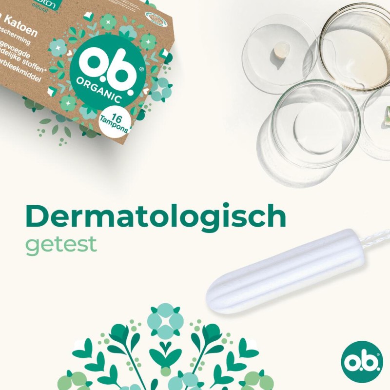 De o.b.® Organic Super-tampons voor zwaardere menstruatiedagen zijn van de tampon zelf tot het terugtrekkoordje vrij van plastic, voor een betrouwbare en natuurlijke bescherming. De o.b.® Organic Normal-tampons bestaan uit 100% gecertificeerd biokatoen en bieden met hun unieke gebogen groeven een schoon en beschermd gevoel. Daarnaast zijn de organische tampons vrij van schadelijke chemicaliën (bv. pesticiden), chloorbleekmiddel en parfum. Bovendien bestaat de verpakking voor 90% uit gerecycleerde materialen en is het karton 100% recycleerbaar. Ze zijn ook gecertificeerd door ECOCERT en geproduceerd volgens de GOTS-standaard.
