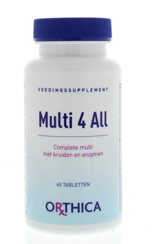 Multi 4 All is een compleet voedingssupplement. Het bevat een combinatie van 4 verschillende soorten voedingsstoffen: vitaminen, mineralen en plantenextracten en enzymen.