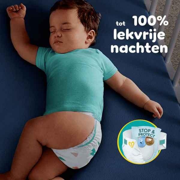 Je baby beweegt ’s nachts voortdurend tijdens het slapen. Daarom hebben Pampers Baby-Dry een Stop & Protect pocket aan de achterkant die tot 100% bescherming biedt tegen lekken ’s nachts.