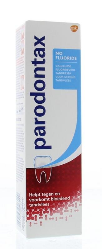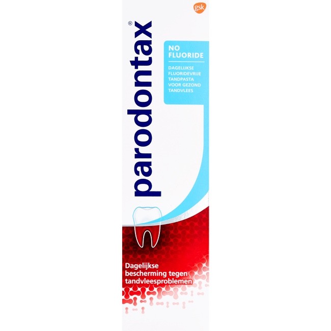 Parodontax No Fluoride Tandpasta bevat geen fluoride maar verwijdert wel tandplak voor gezond tandvlees en een frisse adem. Doordat tandplak rond je tandvlees wordt verwijderd, helpt Parodontax om het tandvlees en de tanden nauw op elkaar aan te laten sluiten. Dit maakt Parodontax vier keer effectiever (bij tweemaal daags poetsen) in het beschermen tegen tandvleesproblemen dan andere tandpasta's.