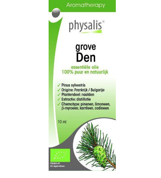 Grove den verzacht en zuivert de luchtwegen. Verwerkt in een massageolie maat het de spieren soepel en ondersteunt het de circulatie.