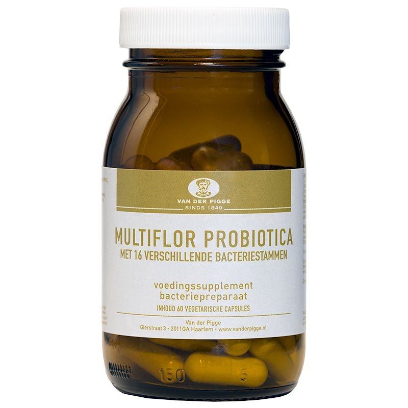 Van der Pigge Multiflor probiotica bevat 16 verschillende bacteriestammen met een grote diversiteit aan individuele eigenschappen. De stammen zijn zorgvuldig geselecteerd op zuur- en galresistentie. Hierdoor maken ze een veel grotere kans om de reis van mond tot darm te overleven. Elke capsule bevat minimaal 4 miljard levensvatbare kiemen (gegarandeerd tot het einde van de houdbaarheidstermijn).
