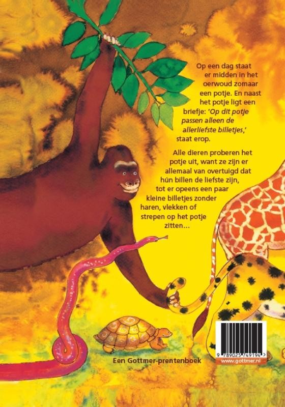 Op een dag staat er midden in het oerwoud zomaar een potje. En naast het potje ligt een briefje. 'Op dit potje passen alleen de allerliefste billetjes,' staat erop geschreven. Alle dieren proberen het potje uit, maar de billen van de olifant zijn te groot, de slang heeft helemaal geen billen en de aap weet niet eens wat hij met een potje moet doen. Terwijl de dieren kibbelen, komt er opeens een jongetje tevoorschijn en dan beseffen ze voor wie het potje is bedoeld. Dit keer zijn alle dieren het hartgrondig met elkaar eens: dit schattige jongetje heeft echt de liefste billetjes!