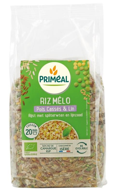 Primeal Rijst met spliterwten en lijnzaad bio (500 Gram)