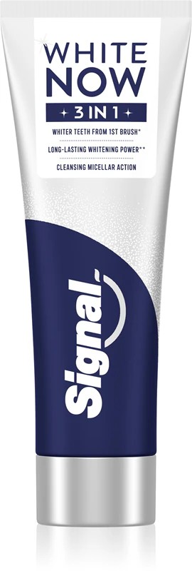 Prodent White Now 3-in-1 Tandpasta voor wittere tanden vanaf de eerste poetsbeurt met langdurig witmakende werking, voor stralend witte tanden, dag in dag uit. Het rijke schuim van deze tandpasta verwijdert onzuiverheden op milde wijze en is zacht voor het glazuur door een reinigende micellaire werking. Benut de kracht van je glimlach met Prodent White Now 3-in-1 Tandpasta. Het directe optische resultaat is tijdelijk. Klinisch bewezen bij 54 personen, vergeleken met een standaard fluoride tandpasta. Bij regelmatig gebruik, twee keer per dag gedurende 2 weken. Klinisch getest bij 59 personen.