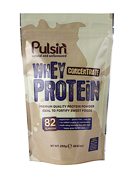 Pulsin Whey Concentrate Protein is een 100% natuurlijk wei-eiwitconcentraat. Pulsin Whey Concentrate Protein is glutenvrij en geschikt voor vegetariërs. Eiwitten dragen bij tot de groei en instandhouding van spiermassa en worden daarom veel gebruikt door (kracht)sporters. Je kunt het eiwitpoeder gebruiken in een shake met (plantaardige) melk of gebruik het bijvoorbeeld om eiwitrijke pannenkoeken te bakken.
