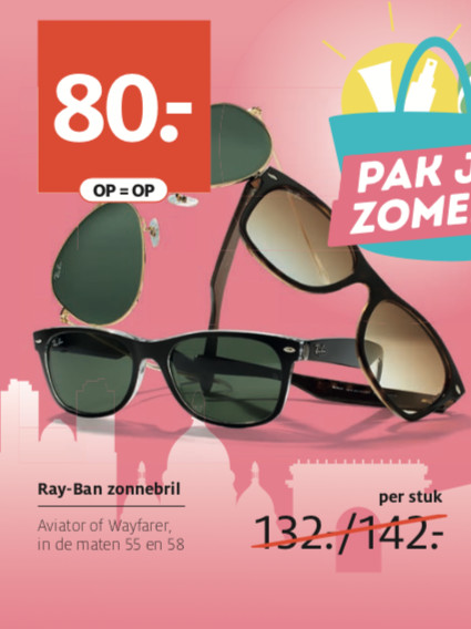 Ray-Ban zonnebril Wayfarer, in de maten 55 en 58.