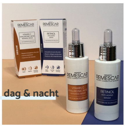 Om het effect te versterken raden we een routine aan met 's morgens Remescar Vitamine C Serum, 's avonds Remescar Retinol Anti-Aging Serum en occasioneel Remescar Instant Rimpel Corrector als instant fix.