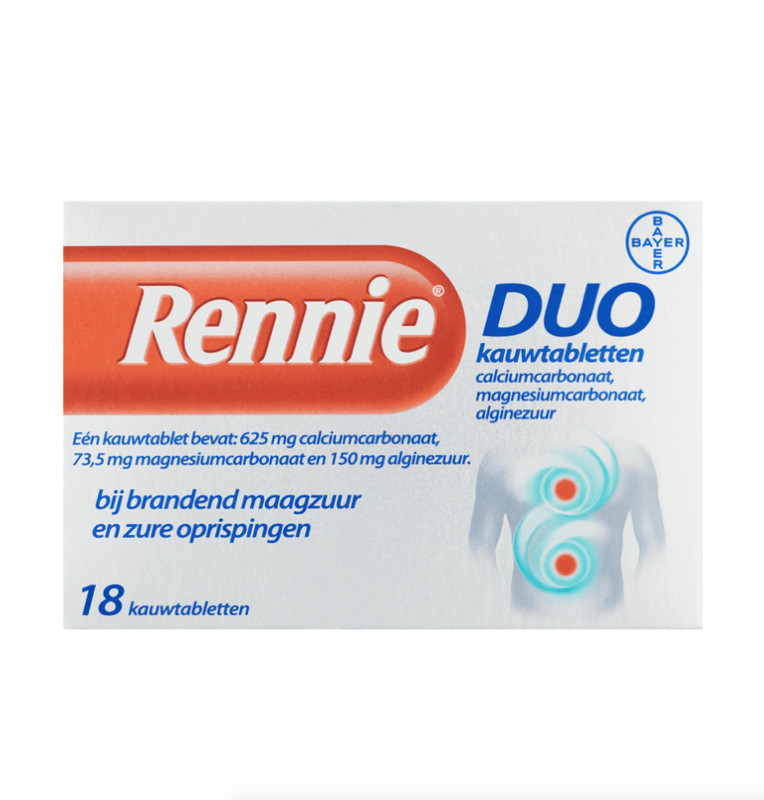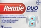 Rennie Duo bij brandend maagzuur en zure oprispingen. Dit middel is een maagzuurbinder.