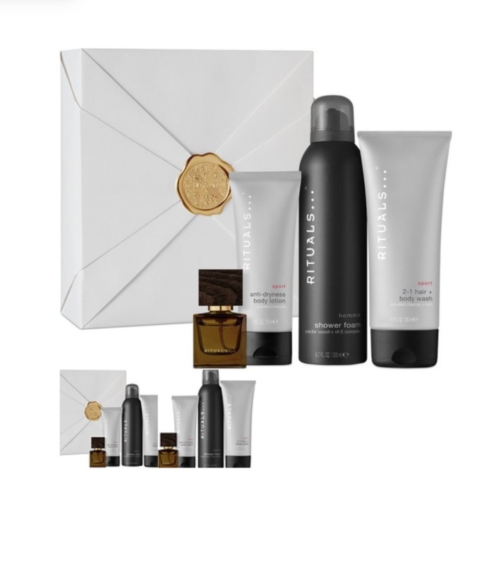 RITUALS Homme - Medium Gift Set Contents: Shower foam 200 ml. Sport 2-in-1 Shampoo & Shower Gel 70 ml. Sports Body Lotion 70 ml. L'Essentiel Eau de Parfum for Men 15 ml.