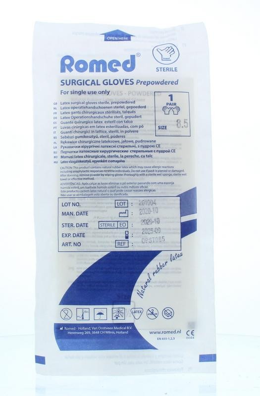 Romed Operatiehandschoen steriel gepoederd 8.5 (1 Paar)