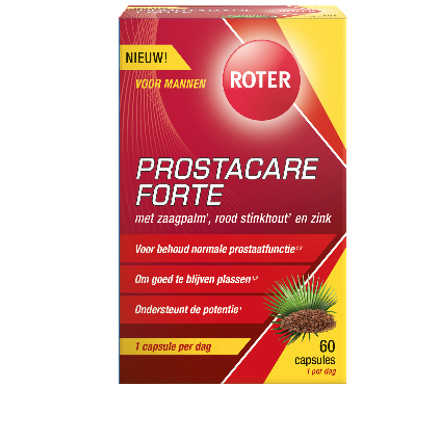 Roter Prostacare is speciaal ontwikkeld voor mannen van veertig jaar en ouder. Vanaf deze leeftijd kan de prostaat in omvang toenemen en dit kan het plassen beïnvloeden. Dat komt doordat de prostaat om de urinebuis ligt. Dit hoort allemaal bij het natuurlijke proces van het ouder worden. Dit voedingssupplement bevat zink en zaagpalm. Deze extracten en stoffen ondersteunen de prostaat en helpt bij goed blijven plassen.