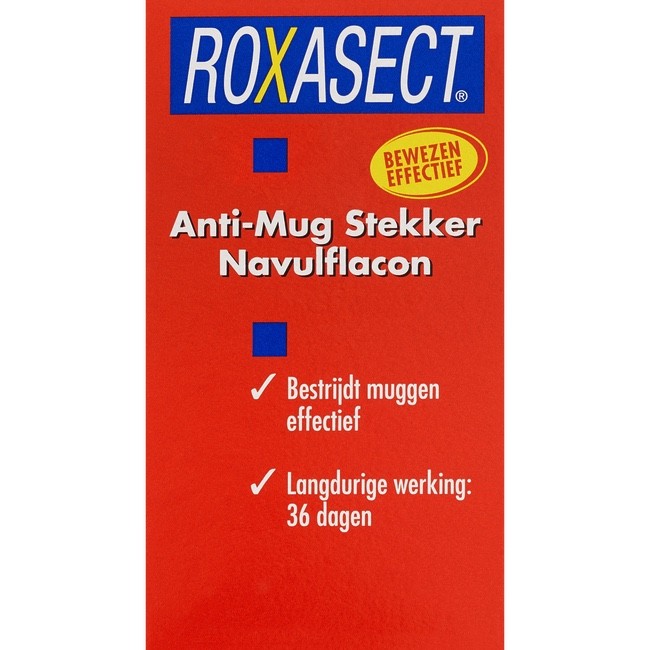 De Roxasect Anti-mug Navulling kun je in het stekkerapparaat van de Roxasect Anti-mug Stekker plaatsen. Hiermee heb je weer 36 dagen bescherming.
