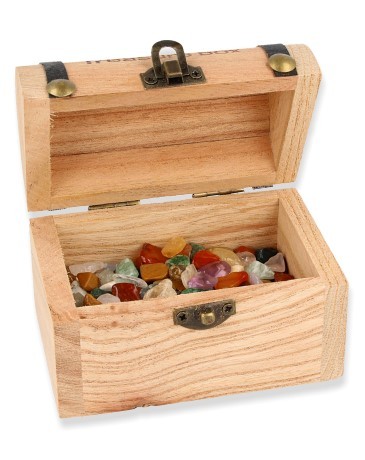 Gevuld met een mix van 100 gram kleine trommelsteentjes. Kinderen vinden het prachtig. maat kistje: 10 x 5,5 cm