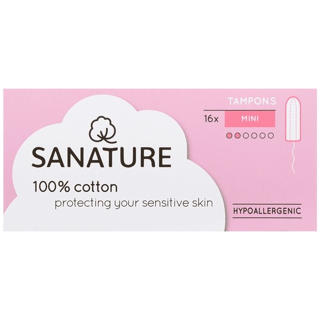 De Sanature 100% Katoen Tampons Mini zijn gemaakt van 100% katoen en daardoor beter ademend en beschermend, ideaal voor de gevoelige huid. De tampons bevatten geen toevoegingen van bleekmiddelen en geurstoffen. Katoen is van nature hypoallergeen waardoor de kans op allergische reacties minimaal is en het goed samengaat met de natuurlijke pH-waarde van de huid. Daarnaast is katoen super absorberend en kan het moeiteloos tot wel vijf keer het eigen gewicht aan vloeistoffen opnemen. Voel je zeker met de Sanature 100% Katoen Tampons Mini!