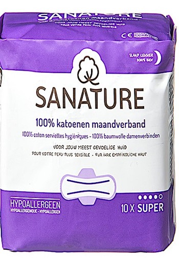 Sanature Maandverband super 100% katoen (10 Stuks)