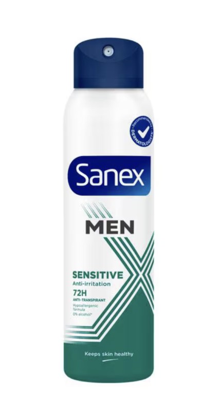 Voor milde bescherming De dermatologisch geteste Sanex Men Sensitive Anti-Transpirant Deodorant Spray is ontwikkeld om de gevoelige huidtypes een effectieve bescherming te bieden tegen transpiratie en nare geurtjes. De anti-transpirante deo beschermt effectief gedurende 72 uur tegen transpiratie en pakt transpiratiegeuren aan bij de bron. Zoet en fris Sanex Men Sensitive Anti-Transpirant Deodorant Spray zal naast de langdurige bescherming de transpiratiegeuren vervangen door een zoete en frisse geur. De geur zal de hele dag door de huid omwikkelen voor een langdurig fris gevoel.