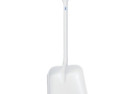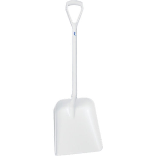 Lichtgewicht Vikan schop met rechte steel en groot & diep blad. De schep is volledig gegoten en de handgreep en steel zijn zo ontworpen dat deze precies in de hand passen, wat overmatige belasting van de spieren voorkomt. Doordat de schep uit één materiaal is gemaakt, zijn de plekjes waar bacteriën kunnen groeien verdwenen. Dankzij het gladde oppervlak is de schop bovendien eenvoudig te reinigen. Deze eigenschappen maken het product zeer hygiënisch en ideaal om mee te werken in de voedingsindustrie. Door grote blad kunnen grote hoeveelheden voedsel eenvoudig verplaatst worden, bijvoorbeeld tussen verschillende containers.