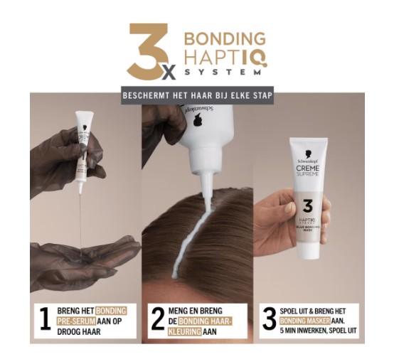 Bonding kleurcrème : de kleurcrème beschermt het haar tijdens het kleuren, voor een prachtige kleur.
