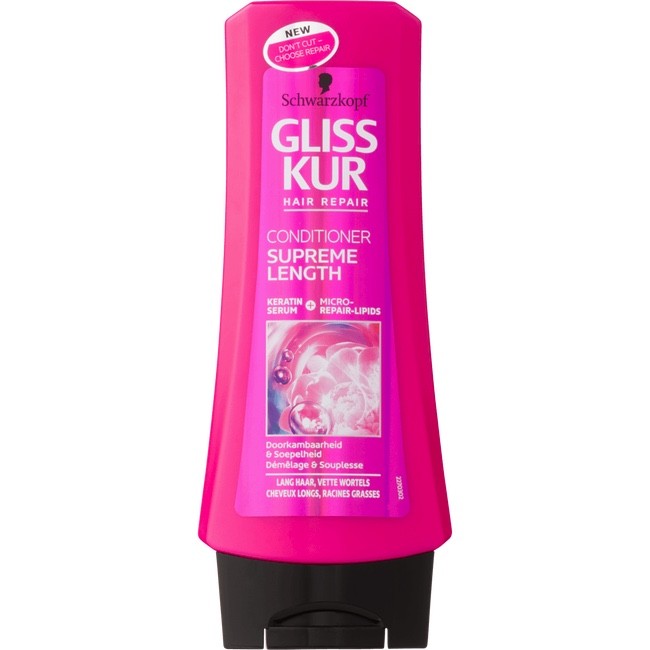 Lang beschadigd haar? De Schwarzkopf Gliss Kur Conditioner Supreme Length herstelt de beschadigde haarlengtes en vermindert gespleten punten. Deze Conditioner is speciaal voor lang haar. De Gliss Kur formules bevatten keratine serum om bestaande schade te herstellen en het haar te beschermen tegen toekomstige schade. 1) Doorkambaarheid 2) Directe soepelheid 3) Zachtheid