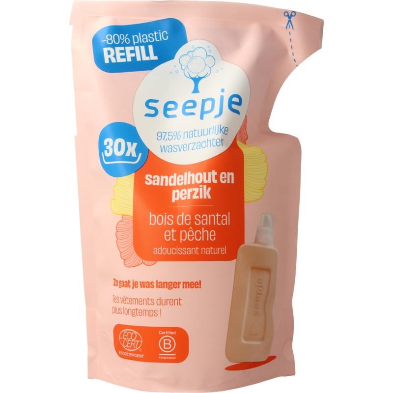 Seepje Wasverzachter sandelhout en perzik navulling (750 Milliliter)