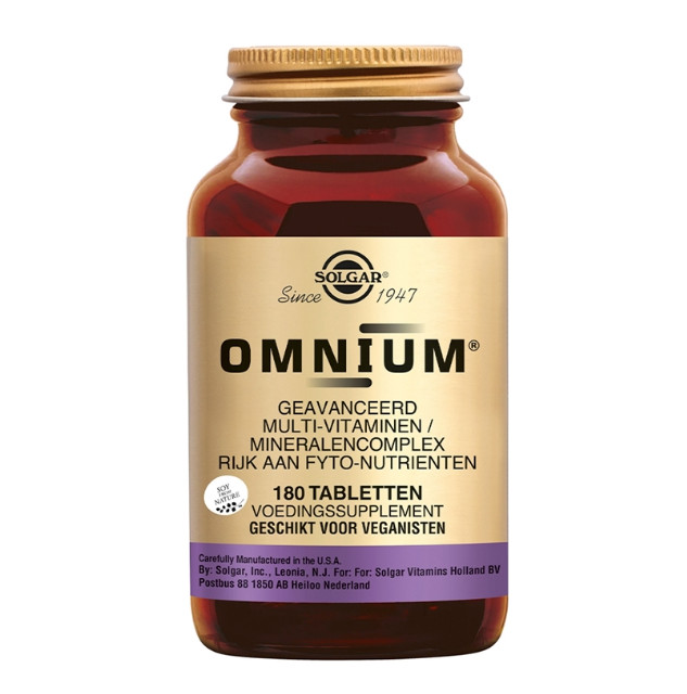 Solgar Omnium® is het meest geavanceerde multi-vitaminen/mineralenpreparaat van Solgar Vitamins. Deze formule wordt wel de ‘Rolls Royce' onder de multivitaminen genoemd en biedt een zeer brede, structurele ondersteuning. Omnium wordt onder meer gebruikt door mensen met een onregelmatige leefstijl.
