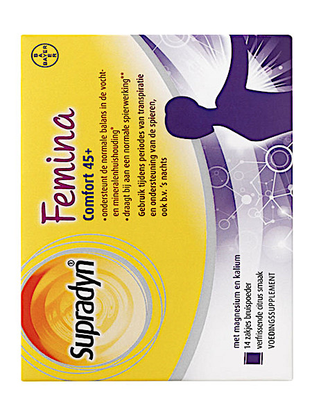 Supradyn Femina Comfort 45+ sachets is een speciaal supplement met magnesium en kalium. Het ondersteunt je om in de overgang naar die nieuwe fase in je leven jezelf te kunnen blijven.