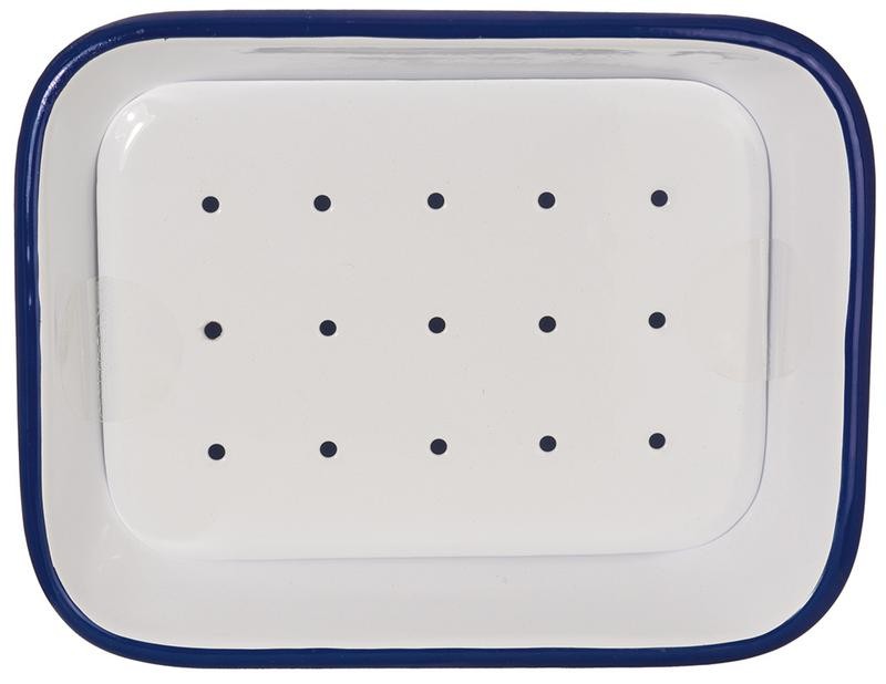 Dit klassieke emaillen zeepbakje is niet alleen stijlvol, maar ook praktisch. Het verwijderbare rooster met gaatjes zorgt ervoor dat de zeep droog ligt. Het schaaltje zorgt ervoor dat er geen zeepresten op het aanrecht of wastafelblad lekken.