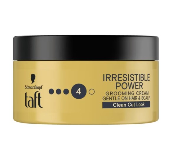 Schwarzkopf Taft Cream Irresistible Power Grooming voor een natuurlijke clean cut look met matte finish, zonder restjes. 48 uur controle van het haar. Plakt niet.