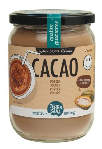 Terrasana Raw cacao antioxidant poeder in glas Proef en beleef pure superfoods, unieke producten die je echt voeden. Rauwe cacaopoeder is afkomstig van de cacaoboon.