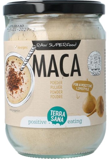 Terrasana Maca high energy Maca groeit hoog in de Peruviaanse Andes en wordt ook wel ginseng van de ANdes genomed. De wortels worden gedroogd en verwerkt tot poeder.