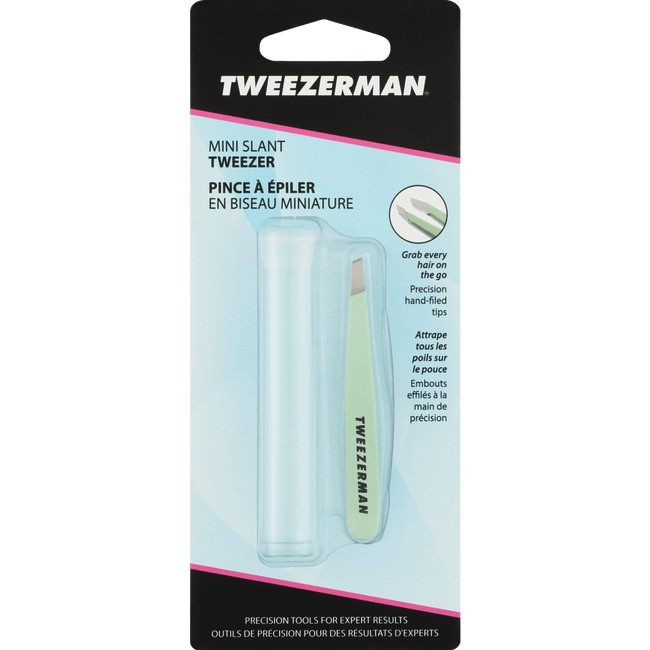Tweezerman Mini Slant Green Tea is het kleinere zusje van de wereldberoemde Slant tweezer. Het is een ideaal formaat voor in het make-up tasje of op reis en ook handig als tweede tweezer.