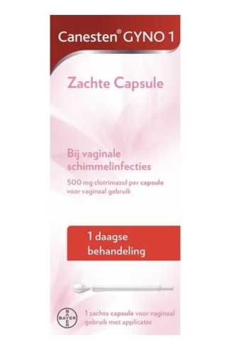 Canesten Gyno 1 bij vaginale schimmelinfecties met eventueel jeuk, een branderig gevoel, rode gezwollen, pijnlijke schaamlippen en een witte, klonterige, geurloze afscheiding.