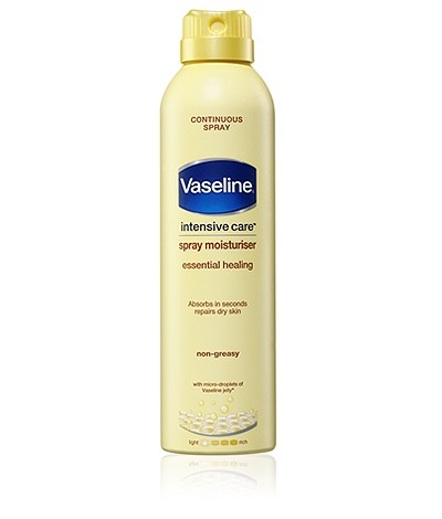 Vaseline Essential Healing Bodylotion Spray is een snel absorberende spray lotion. Onze bodylotion spray is in één gemakkelijke spray aan te brengen voor een gelijkmatige, volledige dekking. De unieke formule is doordrenkt met microdruppels van de originele Vaseline-jelly en maakt de huid zacht en niet vet of plakkerig. Gebruik onmiddellijk na het douchen of op een ander gewenst moment van de dag.