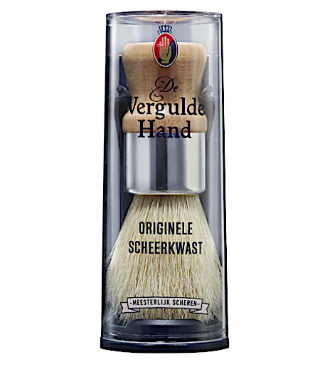 Deze scheerkwast van de Vergulde Hand is met zorg gefabriceerd en bevat uitsluitend zuiver, lang en vol varkenshaar. Hierdoor voelt de scheerkwast niet alleen soepel en zacht aan maar maakt ook beter contact met de huid.