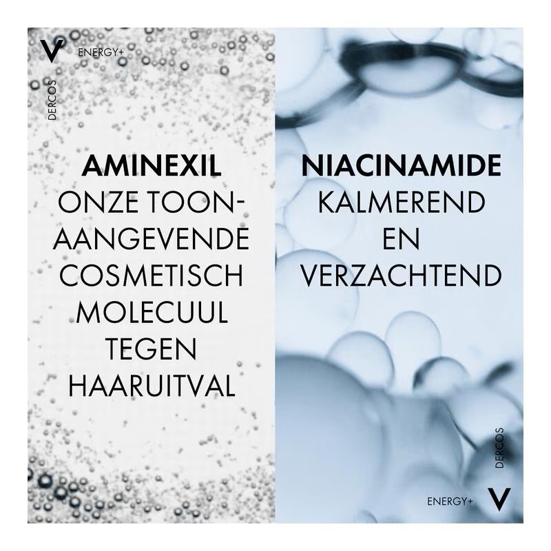 De Energy + Shampoo van Vichy Dercos Technique is ontworpen voor mannen en vrouwen die kampen met lichte tot vergevorderde haaruitval. Het is de enige shampoo met Aminexil van Vichy, een van de voornaamste cosmetische moleculen in de strijd tegen haaruitval. De effecten van deze shampoo zijn klinisch bewezen in 2 studies.