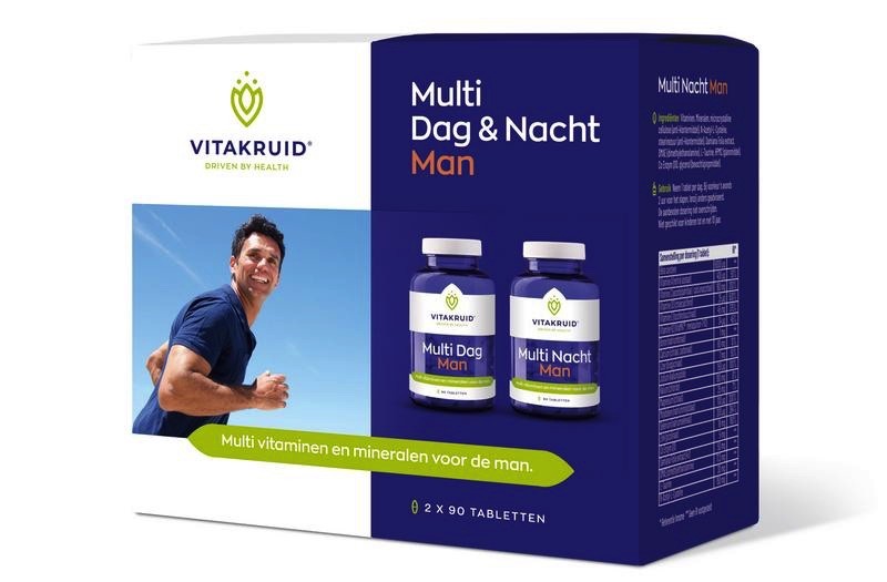 Vitakruid Multi Dag & Nacht Man 100% Vegan 2 x 90 (180 Tabletten)