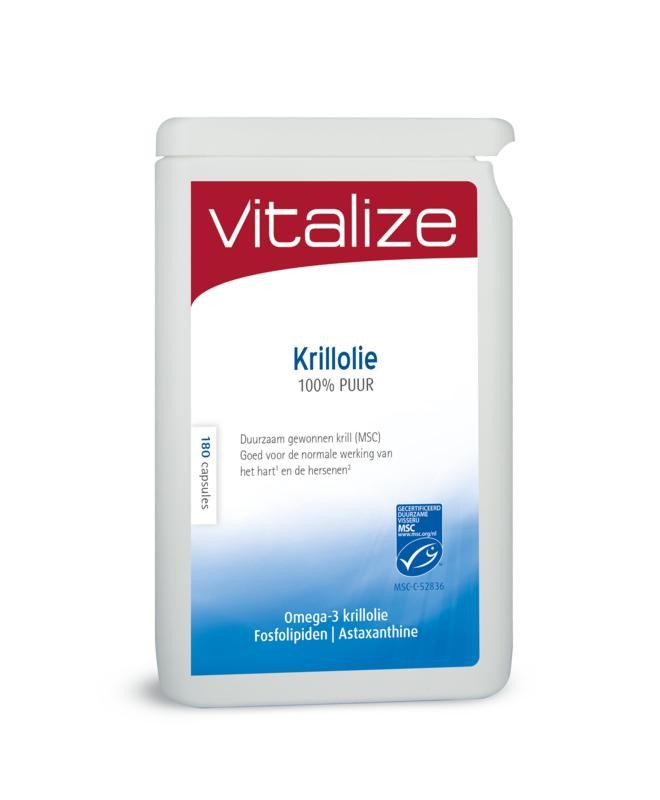 Vitalize Krillolie 100% Puur wordt gewonnen uit kleine garnaalachtige zeediertjes die krill worden genoemd en zijn afkomstig uit de schone wateren rondom Antarctica.