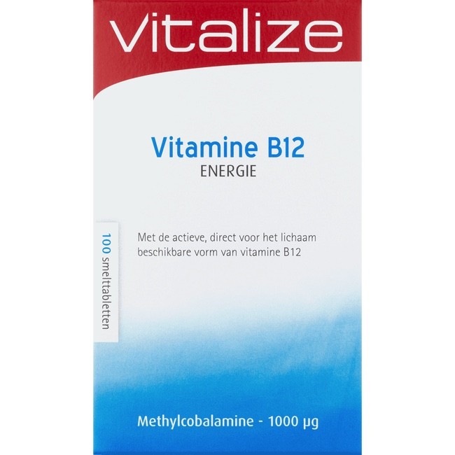 Vitalize Vitamine B12 Energie Smelttabletten bevordert de energiestofwisseling, helpt bij de aanmaak van rode bloedcellen en steunt de opbouw van zenuwcellen. Een smelttablet bestaat uit methylcobalamine. Methylcobalamine is de bioactieve vorm van vitamine B12. Deze bioactieve vorm hoeft niet te worden omgezet en is door het toedienen van één smelttablet per dag direct werkzaam.