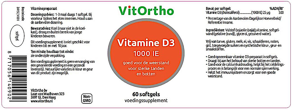 Vitortho Vitamine D3 1000 IE 60 softgels