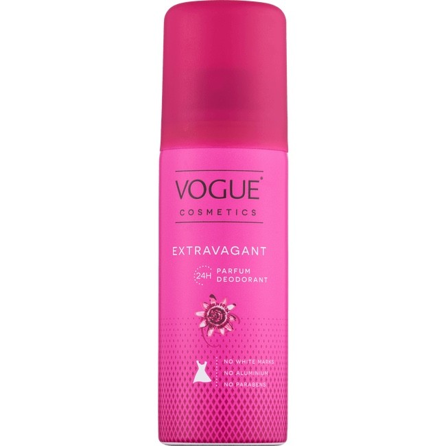 Vogue Extravagant Parfum Deodorant Spray Mini biedt jou tot wel 24 uur bescherming tegen nare zweetgeurtjes. Deze deodorant bevat geen parabenen of luminiumchloorhydraat. Geniet van pure, betaalbare luxe met Vogue Extravagant Parfum Deodorant Spray Mini, zelfs onderweg.
