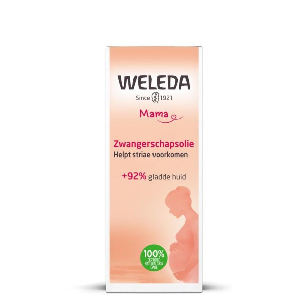 Door je huid soepel te houden en dagelijks in te smeren met Weleda Zwangerschapsolie kan je striemen helpen voorkomen. De combinatie van zoete amandelolie, tarwekiemolie en biologische jojoba-olie voedt de huid intensief, reguleert het vochtgehalte en ondersteunt het herstellend vermogen van de huid. Arnica-extract bevordert de doorbloeding van de huid en verbetert de elasticiteit van het huidweefsel waardoor haar spankracht verbetert. Pure etherische oliën van o.a. lavendel, wilde roos en sinaasappelbloesem zorgen voor een subtiele geur en brengen tot rust