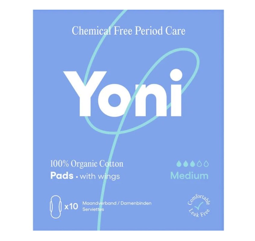 Yoni heeft voor biologisch katoen gekozen omdat het ademend en hypo-allergeen is. De achterkant van ons maandverband en de individuele verpakking zijn gemaakt van bioplastic verkregen uit maïszetmeel. Daarmee is het hele product biologisch afbreekbaar.